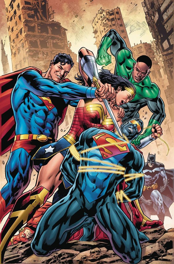 All secrets revealed! Caught in the Justice League's trap, the Eradicator reveals the truth hidden in his circuits. And as Superman confronts his past defeat, it's up to Wonder Woman to make a decision that will divide the team. The no-holds-barred war between the League and a murder machine with Superman's face concludes!