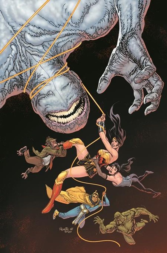 Welcome to the Other Place, where the Upside-Down Man rules without equal, and where all the odds are bleakly stacked in his favor. Wonder Woman will tap into the darkest recesses of power, but can she control it? What sleight of mind will Zatanna reveal to her greatest villain, and what sacrifice (or three!) must be made? This issue features a battle so costly that the team’s roster will be forever changed.