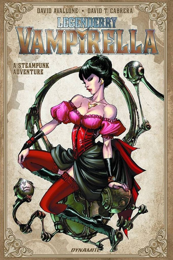From the pages of Bill Willingham's Legenderry: A Steampunk Adventure... it's Vampirella, the immortal horror heroine, neck-deep in conspiracies and corruption. Against a Neo-Victorian backdrop of zeppelins and petticoats, the raven-haired adventurer stalks an alternate reality of danger and darkness in a tale by David Avallone and David T. Cabrera! When not entertaining her guests at the classy Scarlet Club as Madam Pendragon, Vampirella stalks out into the cobblestone streets of the Big City in pursuit of The Council, an alliance of the deadliest ne'er-do-wells ever to plague civilized society. But the hunter becomes the hunted when Blackmass, the extradimensional demon with a hunger for human souls, ventures into the night, pursuing tasty morsels without Council supervision. As panic sets in among friends and foe alike, Vampirella must face a host of enemies -- including the beast-like Black Bat, the devious Veiled Lady, and many more -- in a desperate race to reach the monster first!