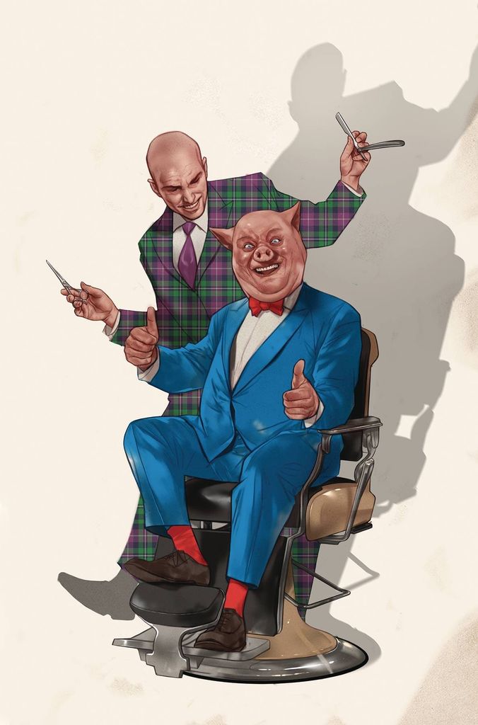 Facing financial and personal ruin, a desperate Porky Pig applies for and gets and entry-level position with LexCorp. Grateful to his new benefactor, Porky becomes Luthor's most loyal employee and defender. But when a major scandal breaks in the news and Lex is called before a Congressional Committee, guess who is about to be offered up as the sacrificial pig?