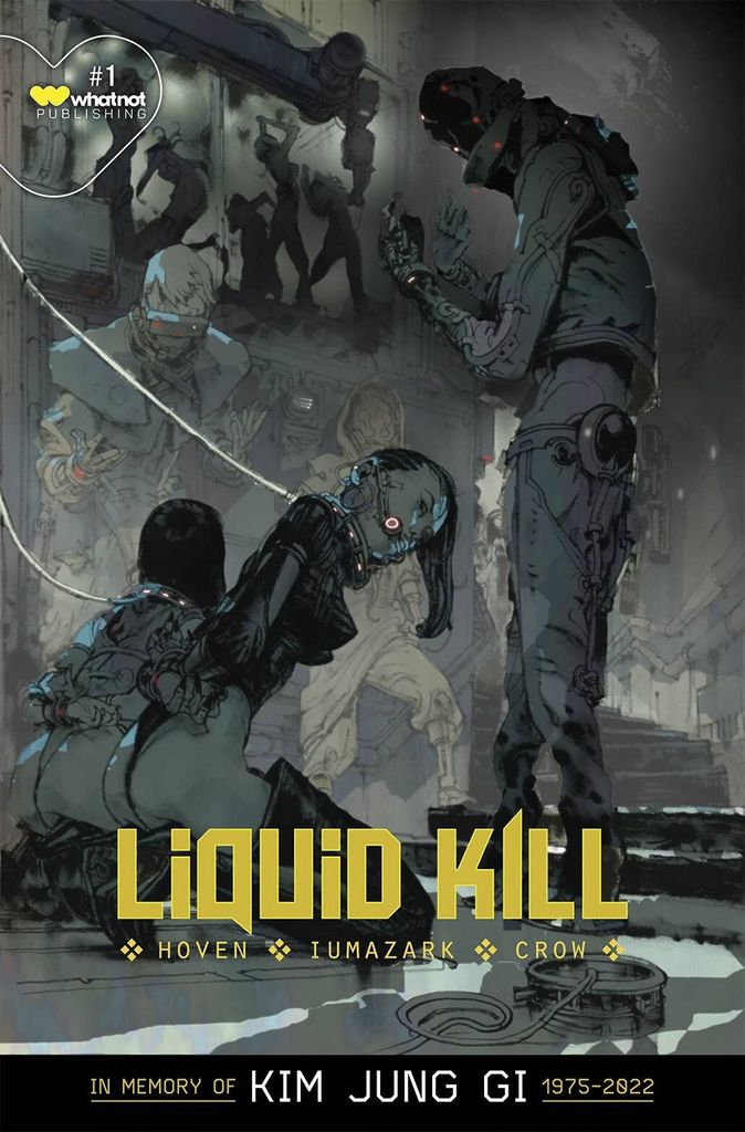 Cover art by world-renowned illustrator Kim Jung Gi, the master artist who inspired millions with his sprawling, elaborate live drawings and the incredible brushwork that appeared everywhere from museum exhibitions and galleries to comic art published by Marvel, DC, and more. This high-quality variant is available in a special glow-in-the-dark treatment printed on metal. LIQUID KILL follows sadist-slaughtering vigilantes as they encounter pure evil in a blood-soaked cyberpunk future (à la GHOST IN THE SHELL meets JOHN WICK) written by the creators of the critically-acclaimed series IT EATS WHAT FEEDS IT and artist Gabriel Iumazark (Boom! Studios).