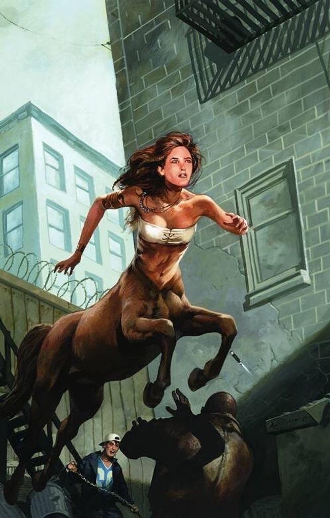 "The Writing on the Wall," a one-shot tale of adventure, begins in Lucifer's cosmos when a beautiful, teenaged centaur dreams about the imminent danger that the Lightbringer will face. Deciding to carry a warning to him, she undertakes the long and perilous journey to the mythical land of Los Angeles. But her encounter with the denizens of Tinseltown - not to mention her Maker - are not at all what she was expecting.