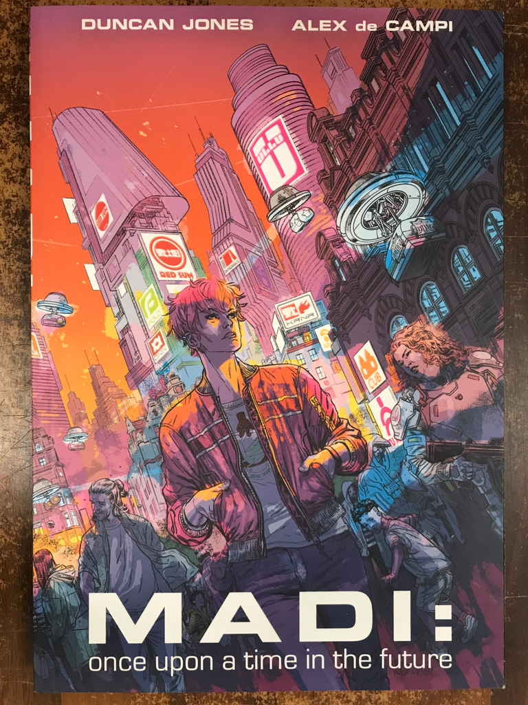 "A long and bloody road trip, one well worth taking." —AIPT Set in the same world as the films Moon and Mute, MADI is a cerebral cyberpunk graphic novel about a team of veterans who have taken on corporate mercenary work to pay for the upkeep of technological enhancements that have turned them into human drones. Madi Preston, a veteran of Britain’s elite J-Squad, is burnt out and up to her eyeballs in bills for her cybernetics’ upkeep. When she takes an off-the-books job that promises to eliminate her and her sister’s debt, the corporate secret she’s hired to steal is not at all what she expects…and she finds herself on the run from everyone she’s ever known. In a globe-spanning adventure from Shanghai to Soho, Madi has to stay one step ahead of the giant corporations closing in on her from all sides. MADI is the third story in director DUNCAN JONES’ Mooniverse following the films Moon and Mute and features stunning art from a murderers' row of comic greats: PIA GUERRA, SIMON BISLEY, ANNIE WU, GLENN FABRY,** JAMES STOKOE**, and more!