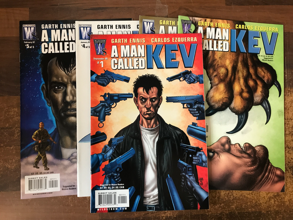 Written by Garth Ennis. Art by Carlos Ezquerra. Cover by Glenn Fabry. From fan-favorite writer Garth Ennis (Preacher) and international superstar artist Carlos Ezquerra (co-creator of Judge Dredd) comes a new miniseries for Kev Hawkins! The world is a lonely place when you're a man without a home - just ask Kev Hawkins. After murdering his boss in a nasty government scheme, he's been banished from the United Kingdom under pain of death. What does the world hold for a man with little life experience or job training beyond wetworks and assassination? Then again, with the past about to catch up with Kev in the most violent and terrifying way possible, what the world holds for him may soon be beside the point.