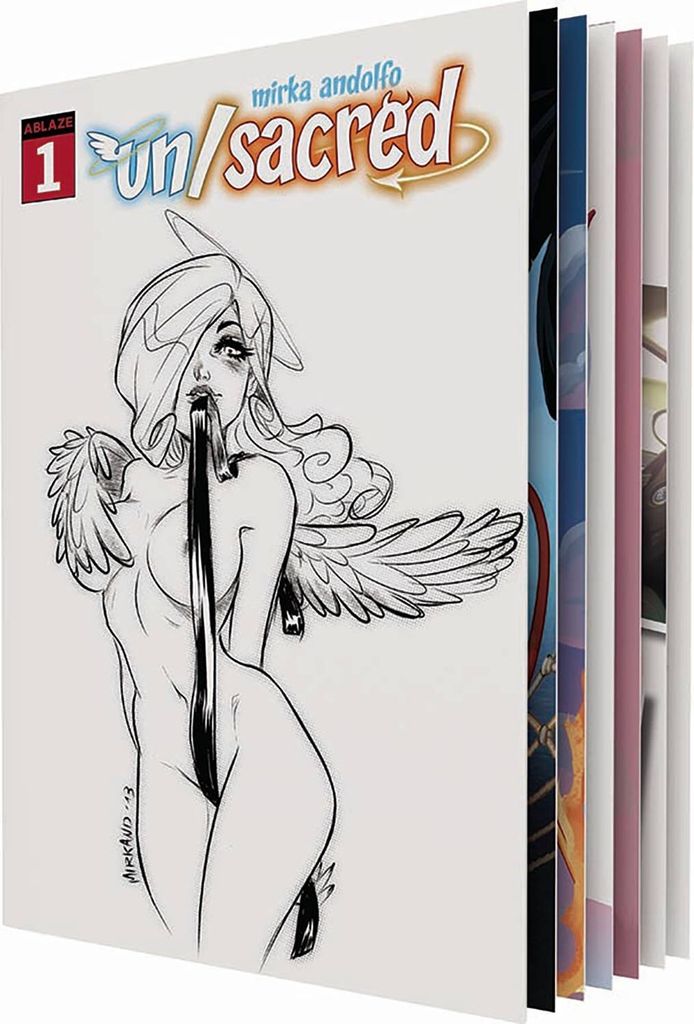 The extraordinary talent of Mirka Andolfo (Unnatural, DC Bombshells) brings to life a Heaven (and a Hell) filled with humor and lovable characters! Angelina, a voluptuous angel, and Damiano, a mischievous devil, are madly in love. But, while she does not intend to give in to temptation, he would very much like to...This is the tale of their bizarre and spicy daily life! A sex-positiveincredibly funnyof life...full of angels, devils and gags! This bundle offers all seven issues of Mirka Andolfo's Un/Sacred Vol. 1, presenting a variety of unique variant covers at a special price! Limited to 500! Featuring the following fantastic covers: #1 - Mirko Andolfo 'Angelina' Variant #2 - Linda Sejic #3 - Ejikure #4 - Elias Chatzoudis #5 - Steve Morris #6 - Mirka Andolfo 'Polaroid' Variant #7 - Mirka Andolfo 'Angelina & Damiano in Love' Variant