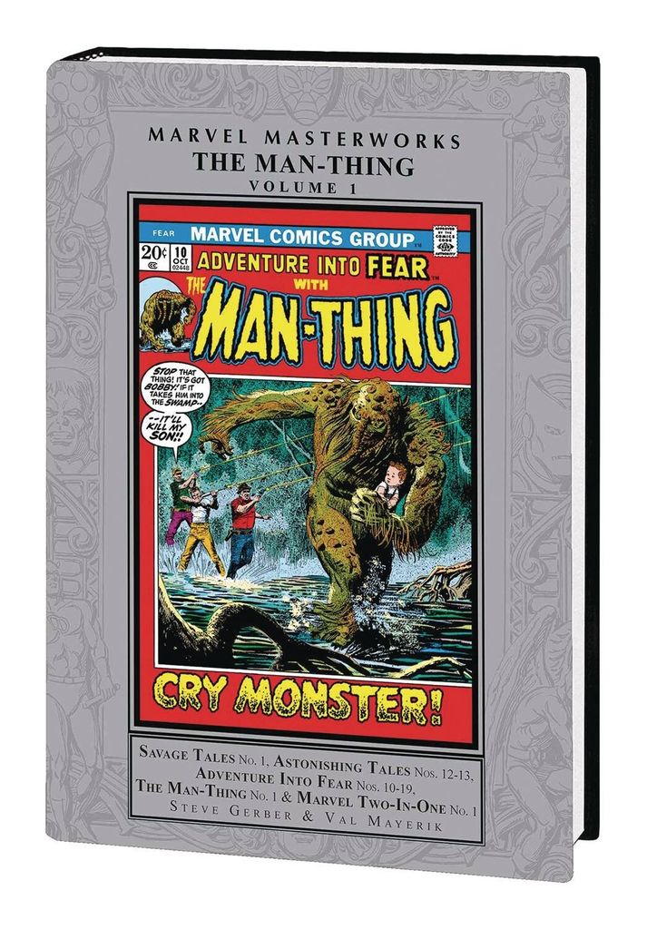 From the fetid of the swamps of the south comes the Man-Thing! The brilliant Dr. Ted Sallis' progress on a new Super-Solider Serum gained the envious attention of A.I.M. One untested injection and a hot-pursuit car crash into the swamp later, Sallis is forever changed. He is now the Man-Thing, a lumbering creature with the searing power to burn those who know fear! Under writer Steve Gerber, this concept became a 1970s comic-book classic. Mixing horror, occult and the Marvel Universe, Gerber's unique narrative concoctions could produce taut morality tales, biting social commentary, a budding sorceress, the Nexus of All Realities…and Howard the Duck! And with the top-flight restoration of the Marvel Masterworks, the muck monster has never looked better - or worse…bad in a good way, that is! Collecting ASTONISHING TALES (1970) #12-13, FEAR #11-19, MAN-THING (1974) #1, MARVEL TWO-IN-ONE (1974) #1, and material from SAVAGE TALES (1971) #1 and FEAR #10. Rated T+