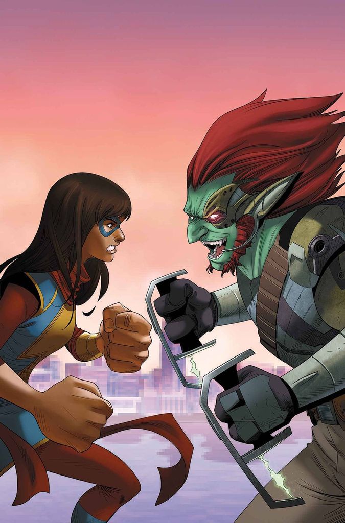 • Kamala's home life, super hero life and online life converge when a member of her World of Battlecraft guild reveals that he's discovered her secret identity. • And it's not just talk…he knows a disturbing number of details about her day-to-day life. • But is he...human? Rated T+