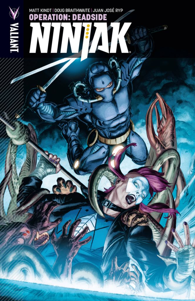In December 2015, a covert military intelligence unit sent a team of 20 agents and one special operative into a parallel dimension. Only one came back. The purpose of their mission was classified. Now, out of options, MI-6 has recruited their most elite operative - codename: Ninjak - to follow the doomed mission's sole witness back into the dimension called Deadside…and bring her missing teammates home. What will they find there? And who will be waiting for them? Jump on board here as New York Times best-selling writer Matt Kindt (DIVINITY) and superstar artists Doug Braithwaite (ARMOR HUNTERS) and Juan José Ryp (Clone) reunite for a terrifying journey into an unknown plane of existence…and bring Ninjak head-to-head with Shadowman. Collecting NINJAK #10-13