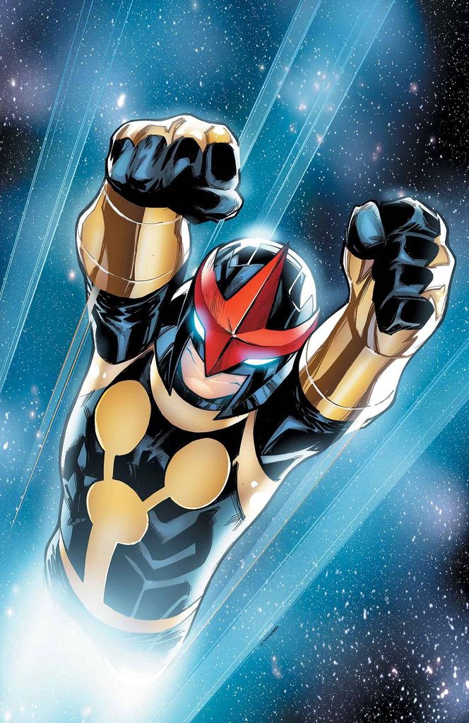 SUMMER VACATION STARTS NOW! • Nova's father is still missing, and his only clue to his old man's whereabouts blasted off into space last issue. • Now, Sam is on the trail of a new mystery -- one he'll need THE AVENGERS help to solve! • Kicks off a story that will lead into AVENGERS #10! Rated T