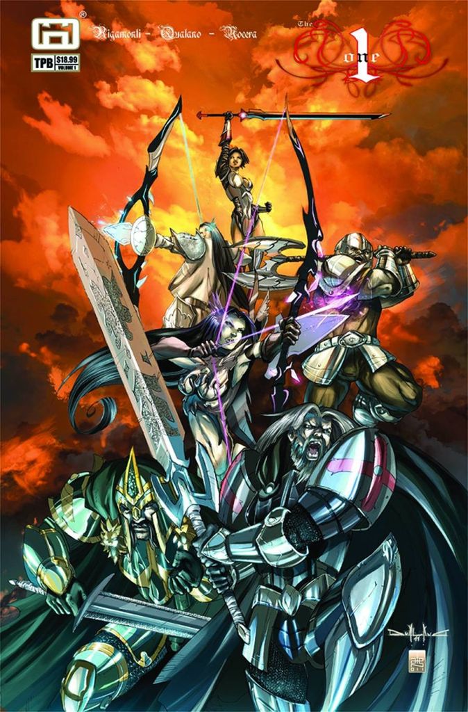 After an era of great peace, the third for power arises anew, desperate to be quenched with a tide of blood and death. War looms once more in this grim and gritty fantasy tale. With the world on the line, four heroes - Faras, Haggarth, Omir and Masdin - begin their dire quest for the glimmer of hope known as "The One," a legendary sword that lies waiting for the storm of battle! Collects issues #1-5.