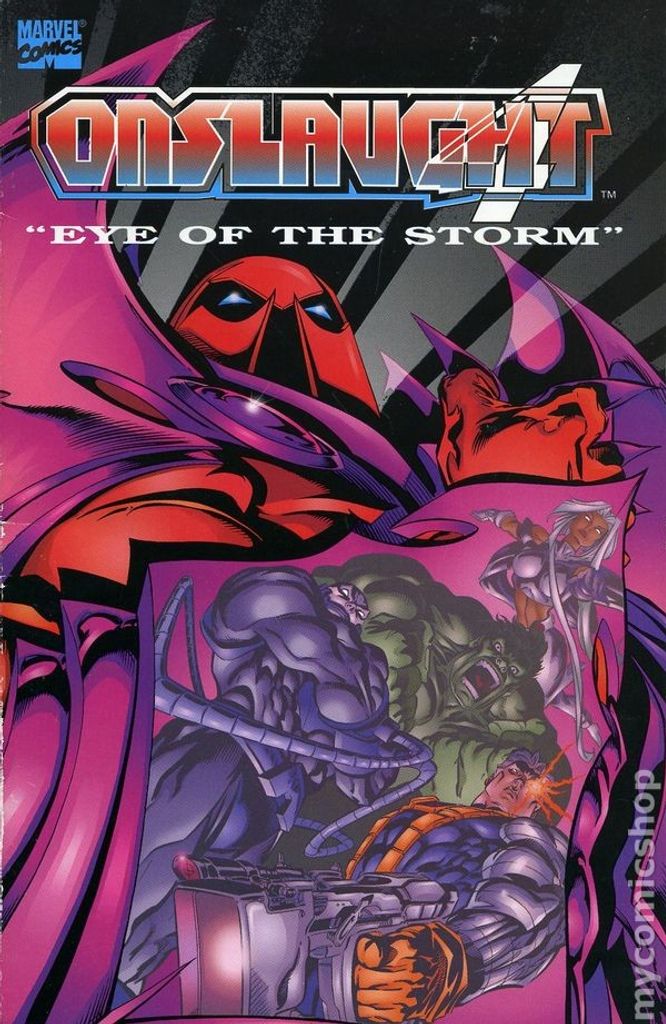 "Eye of The Storm!" Collects Cable (1993-2002 1st Series) #34-35 and Incredible Hulk (1962-1999 1st Series) #444-445. Written by Jeph Loeb and Peter David. Art by Ian Churchill, Angel Medina and Robin Riggs. Cable is fights for his life when Onslaught manipulates the Incredible Hulk into attacking him! Then, not too happy about being used, the mighty Hulk takes the fight to Onslaught, but the result of this assault may turn heroes against heroes!