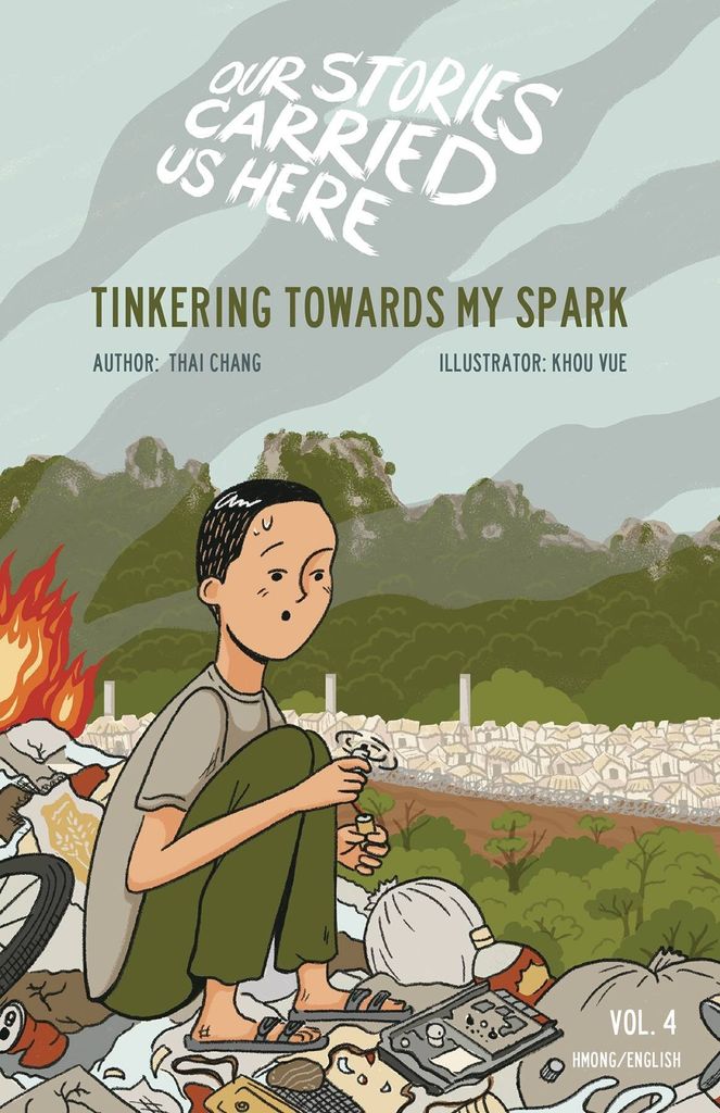 The fourth volume in the unique Our Stories Carried Us Here series of bilingual graphic memoirs written and illustrated for young readers, ages 8-13, Tinkering Towards My Spark follows Thai Chang from the mountains of Thailand to classrooms in Minnesota. Thai explored environments and tinkered with gadgets until he found his spark inspiring and educating others. Thai grew up in a refugee camp in Thailand and knew at a young age that he wanted science and technology to be an important part of his life. After moving to the US at age 13, Thai worked hard to learn English and build a career in STEM with the help of those around him. Thai's story is beautifully told in English and Hmong, illustrated by Hmong-American illustrator Khou Vue.