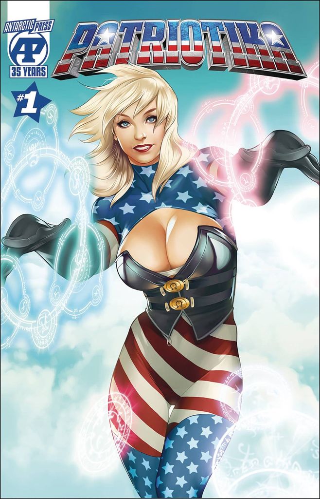 The powers of a god, the troubles of a teen! The goddess Athena, namesake descendant of the first Athena, has come to Earth to save it from invaders out of myth, but the very power that originally banished the gods is sapping her life force too! To survive, she must reluctantly bond with a human: a scrawny college student named Erin. Together, they transform into the mighty Patriotika to fight gods and monsters, protect and rally the military, and deal with campus social life!