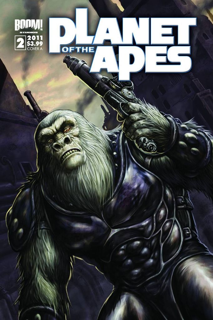 Get your hands on these damn dirty Apes in the second issue of the all-new series that takes place before the original 1968 Planet of the Apes movie, set in the continuity of the first five films! An assassination tears through the fabric of both Ape and Human societies. In the chaotic aftermath, Ape forces begin arming themselves. Prepare yourself for the explosive results as Ape and Human forces clash! Covers by Karl Richardson and Chad Hardin.