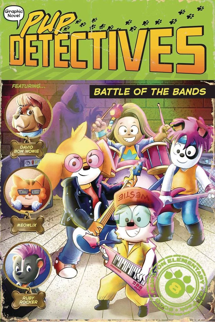 In this eighth installment of the Pup Detectives graphic novel series, the sleuths must stop a ghostly saboteur! The local Battle of the Bands gets off to a haunting start as a mystery ghost tries to scare music away from Pawston forever! Can the Pup Detectives sniff out the specter and save the day?