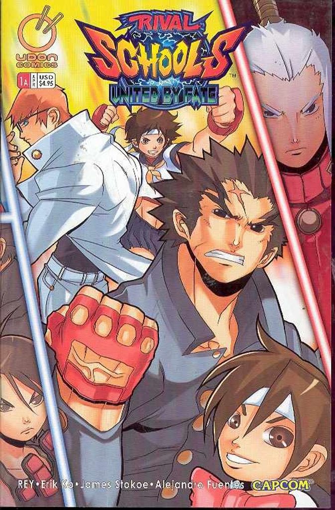 From the pages of Street Fighter comes Capcom's beloved high school brawler... Rival Schools! All of Japan is gripped by fear as numerous students begin disappearing. When police are unable to stop or explain the kidnappings, the top students from several elite schools decide to take their fate into their own hands. Join fan-favourites Street Fighter character Sakura, Hinata and the entire RS cast to see what bombastic, action-packed, comedic mayhem awaits them in this new series brought to you by Rey (creator of Street Fighter: Cheapshots and Sharknife)! With special guest covers by Capcom Japan's Edayan (the creator of Rival Schools), and Street Fighter artist, Alvin Lee!