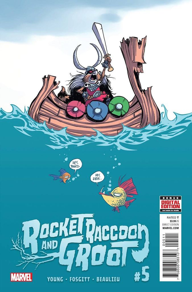 RACCOON-NAROK STARTS NOW! • Hear the epic tale of the voyage of ROCKET THE RED and LEAF GROOTERSON! • Put on your pillaging pants and row your longboat towards shenanigans, you striking viking! Rated T