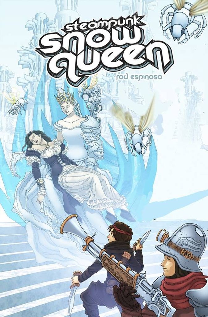 Rod Espinosa's three-part steampunk adaptation of this classic tale reaches its spine-tingling climax! Gerda the brave inventor has faced numerous hazards in her quest, and has made staunch allies along the way. At last, she has found her way to the lair of the Snow Queen, but even with all her cleverness and all the new friends helping her, Gerda's home kingdom may still face frozen oblivion!