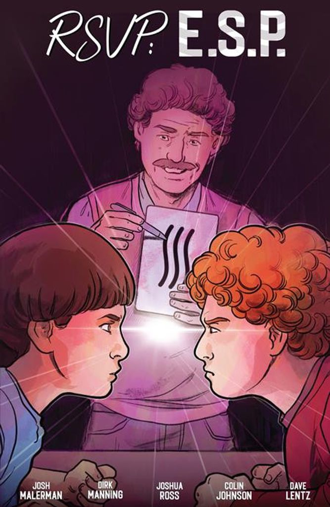 Dr. Charles Massey has lost his reputation, his friends, and even his marriage in his pursuit to prove psychic powers are real. Now, in a final desperate bid to validate his years of failed studies, he invites two potentially psychic children into his home lab for a clinical study. What he doesn't know is that they both have powers and abilities beyond his wildest imaginings... and that while one child has good intentions, one does not. RSVP: E.S.P. is based on a story by Josh Malerman, adapted by Dirk Manning, illustrated by Joshua Ross, colored by Colin Johnson, lettered by Dave Lentz, and edited by Drena Jo with a cover by Joshua Ross.