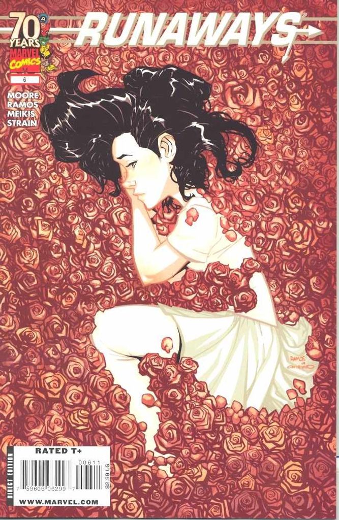 The conclusion of Terry Moore's (Strangers in Paradise) first heart-wrenching story-arc. It's the final showdown between Karolina's fellow Majesdanians and the Runaways. The effects of this will shake the core of the Runaways and change their lives. And with Humberto Ramos (X-MEN, WOLVERINE) on board you KNOW you can't miss this.