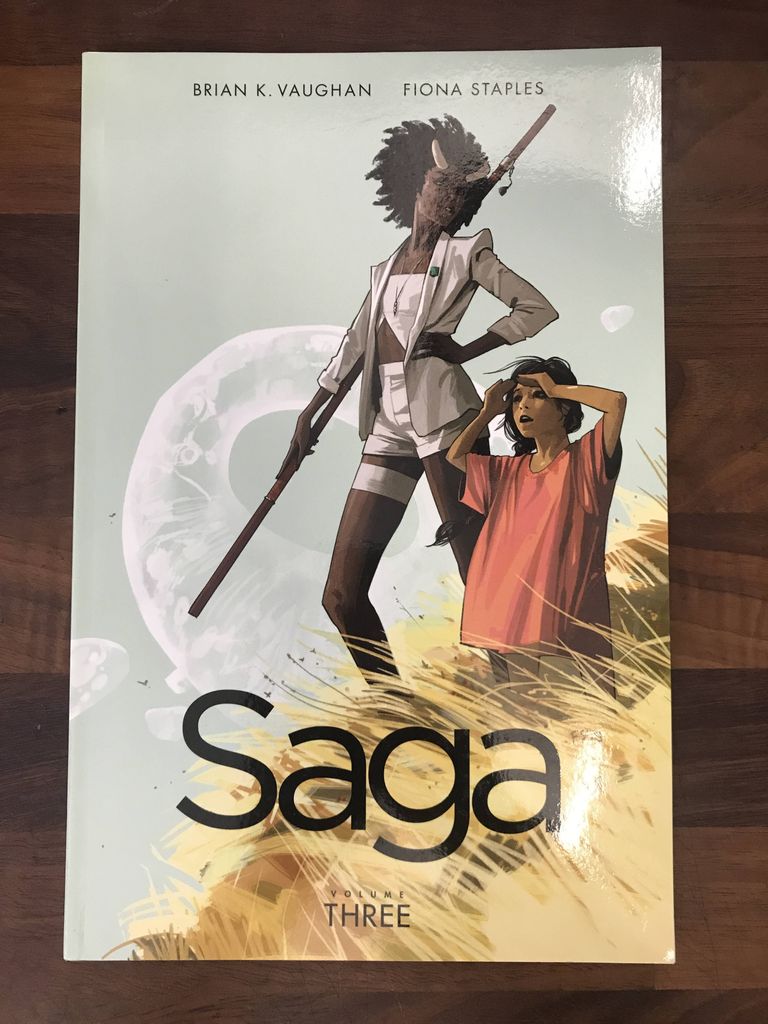 The Eisner, Harvey, and Hugo Award-winning phenomenon continues, as new parents Marko and Alana travel to an alien world to visit their hero, while the family's pursuers finally close in on their targets. Collects SAGA #13-18