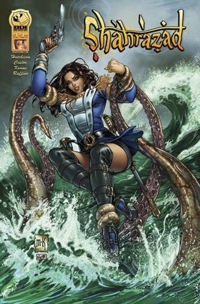 A new heroine rises from the legends of the ancient world. Shahrazad was known for her amazing stories of 1001 Arabian Nights, but now it is time to tell her story! She lives a life unlike anything you could imagine. An existence that spans generations as well as genres. In this new ongoing series, Shahrazad stares into the storms on the horizon with determination, but the forces of nature, and of history, are not to be taken lightly!