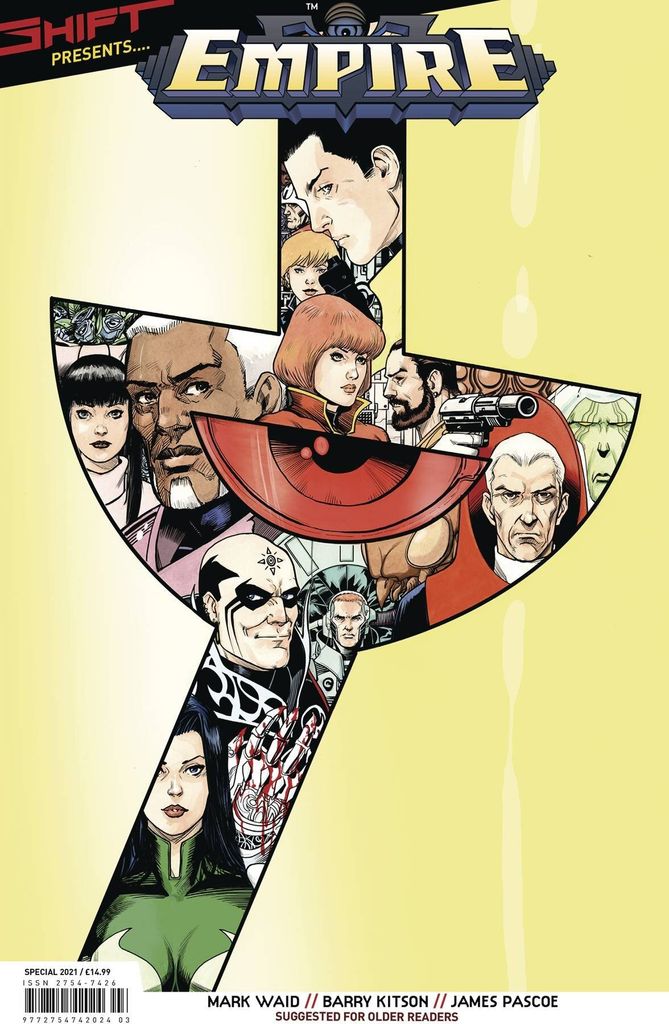 The latest in the line of Shift special editions. We are working with a number of publishers and creators to highlight their work, and bring it to an unsuspecting public! We are proud to bring you the collected first series of industry titans Mark Waid and Barry Kitson's Empire! Golgoth rules the world? Or does he? The armored despot thinks he controls most of the populated Earth, ruling through military might and fear. But he can't even trust his own super-powered staff as some plot to free themselves from his grip. It's a tumultuous time as the balance of power begins to shift. Long out of print, now in the oversized SHIFT format on high quality paper, this will showcase Kitson's stunning art and Waid's brilliant storytelling and sports an all-new cover by Kitson!