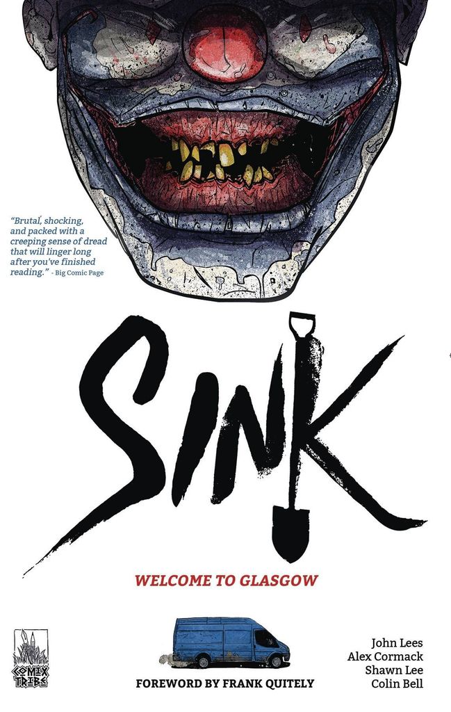 In the pages of Sink, you'll enter a forgotten East End district of a warped funhouse mirror vision of Glasgow, Scotland. Sinkhill is a hive of crooks, deviants and killers, and ordinary folk unfortunate enough to live among them. This thrilling, bload-soaked volume collects Sink #1-5, from modern horror masters John Lees (The Nasty, Hotell) and Alex Cormack (Drive Like Hell, Road of Bones). Foreword by comics superstar Frank Quitely (All-Star Superman).