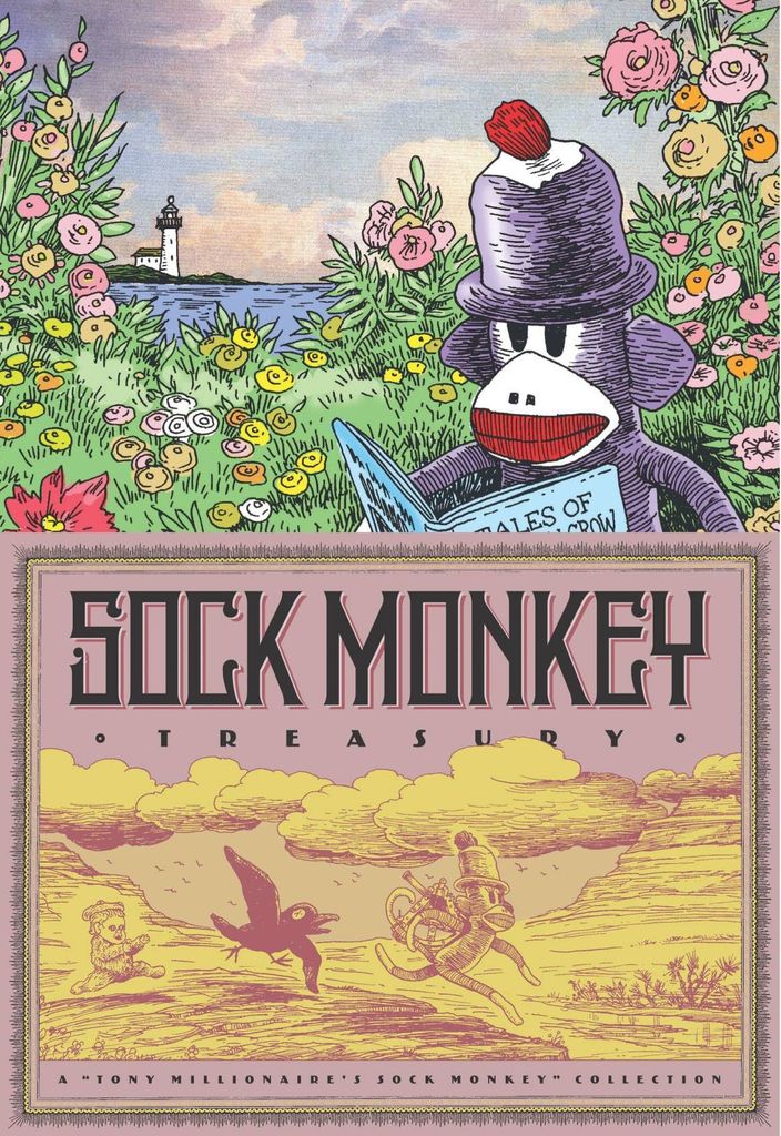 A TREASURY OF ALL THINGS SOCK MONKEY! Tony Millionaire's Sock Monkey is one of the great all-ages comics properties of the new millennium, spawning plush dolls, TV appearances, lunch boxes, Zippo lighters and more. Now, for the first time, all twelve of multiple Eisner Award-winner Tony Millionaire's acclaimed Sock Monkey all-ages comic books (1998-2007, originally published by Dark Horse Comics) are collected under one cover, as well as the full-color graphic novella 'Uncle Gabby' (2004) and the full-color illustrated storybook, 'The Glass Doorknob' (2002), ready to be devoured by a new generation of young readers. The precocious sock monkey Uncle Gabby and his innocent pal Mr. Crow are the heroes of this funny, unsettling and endearing collection. Follow them as they try to find a home for a shrunken head, play matchmakers between the bat in the doll's house and the mouse in the basement, unlock the mysteries of a glass doorknob, hunt salamanders, try to get to heaven, and much more. The book also includes the only full-length Sock Monkey graphic novel, 'The Inches Incident.' Inches the doll was the cutest in the whole house and loved by everyone. Then one day... Inches turned EVIL! What will Mr. Crow and Uncle Gabby do? Beloved by adults and children, Sock Monkey harkens back to a time when comics actually were for kids.