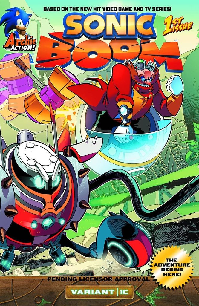 Here comes the BOOM! FIRST ISSUE in an ALL-NEW ONGOING SONIC COMIC BOOK SERIES! Based on the new hit TV and video game comes SONIC BOOM #1-a new Sonic the Hedgehog comic book series from Archie Comics! Sonic the Hedgehog and his friends are back and ready to do battle with the evil DR. EGGMAN and his diabolical death-machines! This ground-breaking new chapter in the Sonic the Hedgehog franchise puts a new 'spin' on all your favorite heroes and villains-plus new faces and hilarious new stories chock-full of action-and it's all brought to you by the folks that bring the hit series Sonic the Hedgehog and Sonic Universe to you each and every month! Featuring a stunning first issue cover by Sonic art legend Patrick 'SPAZ' Spaziante, and 4-part 'HERE COMES THE BOOM' collector covers from series artists Evan Stanley, Rick Bryant and Matt Herms!! Collect them all and own a piece of Sonic comic history! Get ready for the BOOM, baby!
