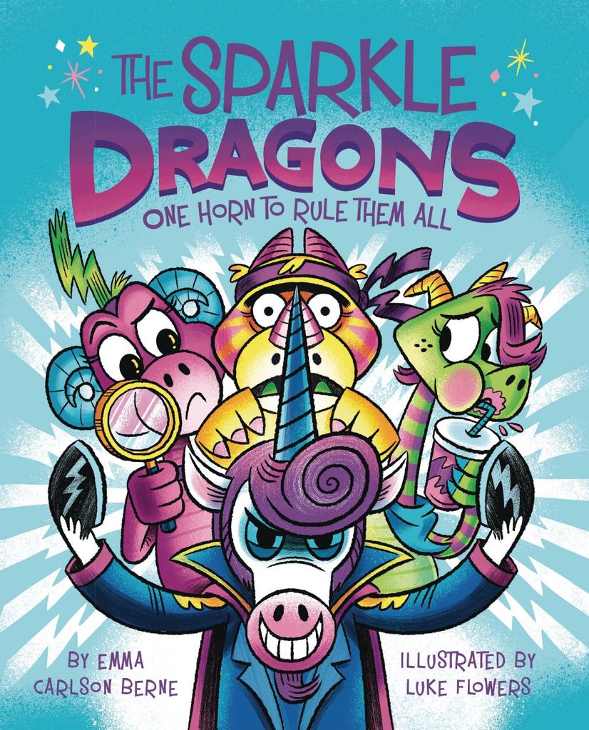Help! Sparkle Dragon alert! Princess Puff wants Robert the Troll's bustling smoothie shop closed. But why? The three glittery gumshoes, equipped with brains, sass, and brawn-Trixie, Glinda, and Rue-are on the case. While investigating Puff, the sparkly trio finds an even stranger string of clues that lead to none other than Malum, the mysterious unicorn. Malum is suspiciously inventing a new gadget in his stable and keeping it a big secret… and the Sparkle Dragons are determined to unveil just what he's hiding. Sparkle, shine, glitter-go!