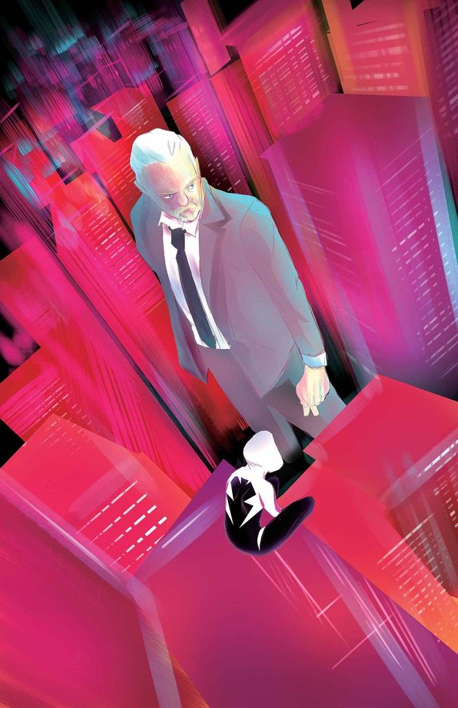 • Captain George Stacy has always been a big force in Spider-Gwen's life. • But knowing that his daughter is the Spider-hero swinging around the city has taken its toll on him. Can he come to grips with the knowledge? • Can she handle her police captain father if he can't? Rated T
