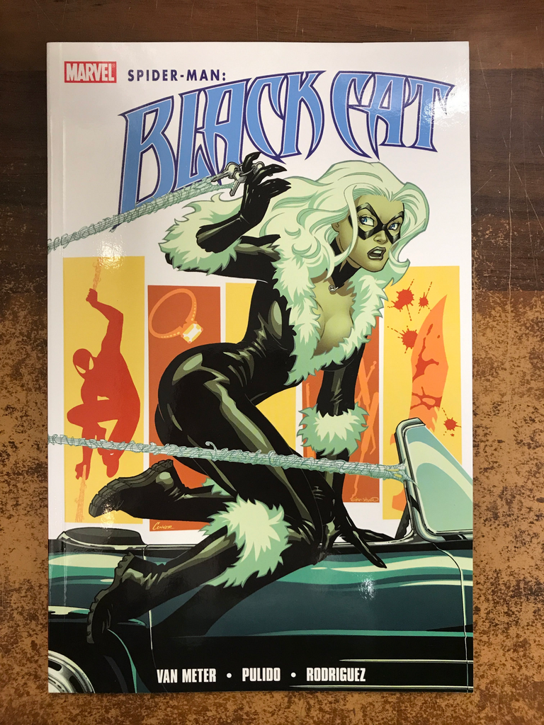 The Cat is B(l)ack in her own series and it's international intrigue at its sexiest by Jen Van Meter (Hopeless Savages, JSA) and Javier Pulido (AMAZING SPIDER-MAN). As Spider-Man is stalked during the Grim Hunt, the world's slyest, smartest and sneakiest jewel thief's latest heist puts the Black Cat face-to-face with the family that has been terrorizing Spider-Man's dreams and threatening those closest to him! Collecting AMAZING SPIDER-MAN PRESENTS: BLACK CAT #1-4 and material from THE MANY LOVES OF THE AMAZING SPIDER-MAN and AMAZING