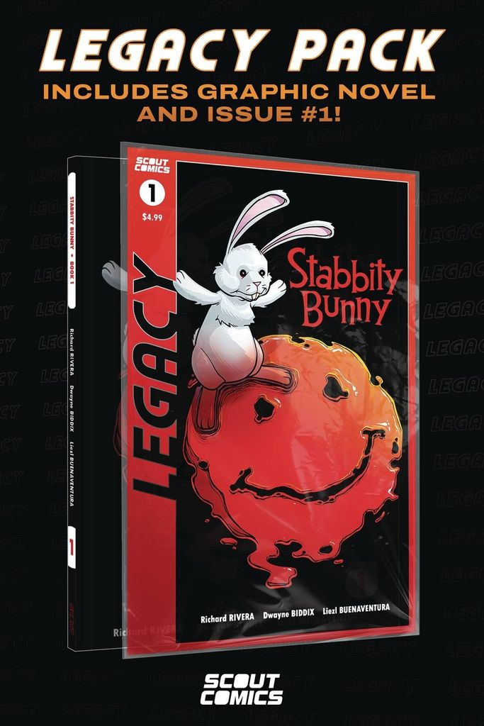 A Scout Legacy collector's pack! This beautifully designed hangable package (measures 8 1/2' x 12 3/4') includes a collectible first issue (bagged and boarded) and the complete trade paperback! Grace Lee, an exceptional seven-year-old, is targeted by the ancient evil that has plagued her family for a century. While on a school field trip, plush rabbit in tow, she is kidnapped. The little girl is in deadly danger, but her plight awakens an unexpected protector, Stabbity Bunny, and the 'bad man' is never seen again. Amanda Lee, a former mercenary turned children's book author, finds and brings her daughter home. Fearing this is just the beginning, Amanda calls Magdalena, Grace's grandmother and practitioner of gypsy magic, for help. The last stand against their supernatural foe and his minions has begun.
