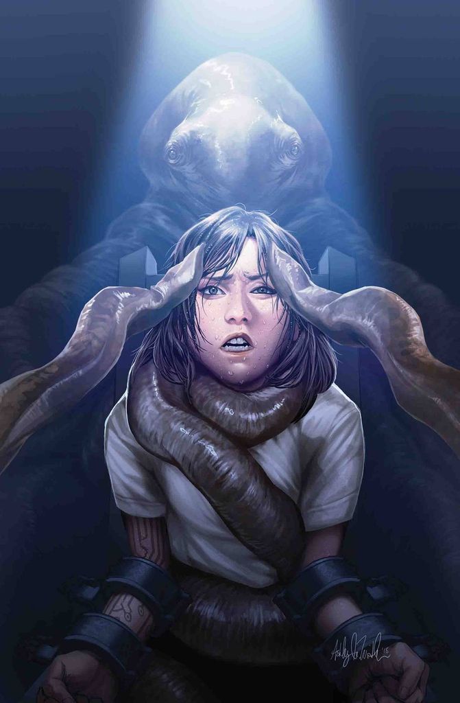 STUCK IN A JUNKYARD JAIL AT WAR. IT CAN'T GET WORSE - RIGHT? • I mean, unless you add a vengeful FORCE GHOST. And insane MURDERDROIDS. And a BOR BRAIN-LEECH. And a SENTIENT BIOHAZARD... • Surely even rogue archaeologist DOCTOR APHRA can't find a way to make things even worse. • Wrong. Because her current beau and her ex are just about to meet... Rated T