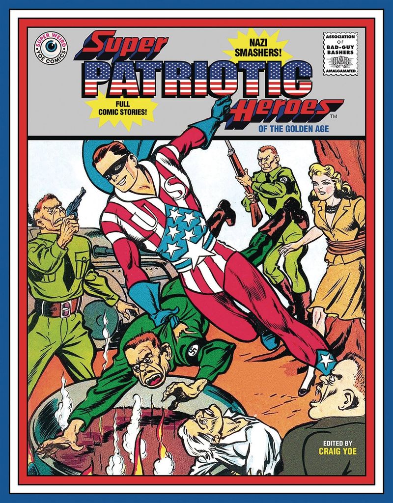 These full-color comic stories from World War II tell of true role models of the patriotic ideal. Starting with The Shield and followed by Captain America, a whole battalion of red, white, and blue heroes appeared on the four-color page to help fight the Nazis. Their fascinating history and their stirring tales will both entertain and inspire new generations! See the two-fisted, three-colored Miss America, The Fighting Yank, Super-American, U.S. Jones, Captain Freedom, Lady Liberty, Major Victory, American Eagle, Captain Victory, and many more!