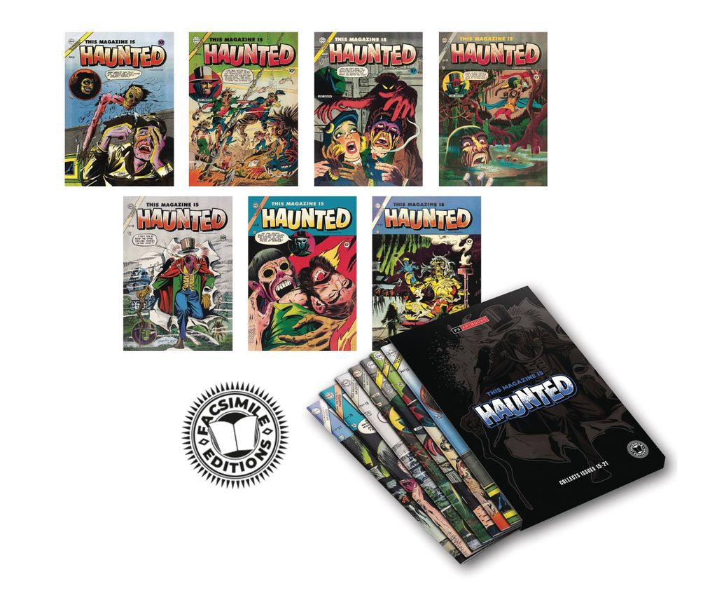Collect the third wave of 7 issues from the legendary series by Charltonr comics, This Magazine is Haunted! For the first time ever collect 7 Facsimile Editions in one premium Slipcase! Issues #15-21, first printed by Charlton Comics beginning February 1954 is full of undead terrors and macabre themes that will leave a terrifying taste in your mouth! With artists such as Sheldon Moldoff, Bob Powell, Dick Giordano, Robert McCarty, Ed Waldman, Bill Molno, Seymour Moskowitz and Steve Ditko we guarantee you will be left quaking in your boots! With over 200 pages of nightmare fuel you can't get much better bang for your buck!