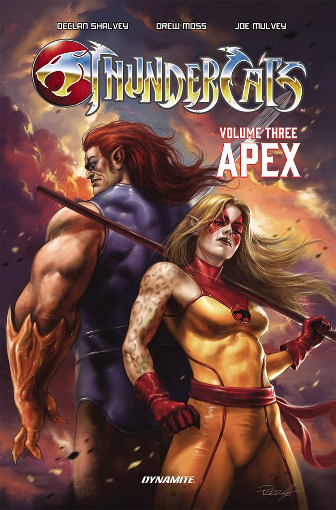 INTO THE DEVIL'S LAIR! Following the discovery of Mumm-Ra's Black Pyramid, Lion-O makes the fateful decision to confront the Devil-Priest of Third Earth one-on-one in his place of power. If the ThunderCats' brash young leader can defeat his nemesis in single combat, the last survivors of Thundera's claim to their new home will be secured. But in the aftermath of their epic clash, both Lion-O and the ThunderCats find themselves fighting for their lives in two separate battles - on two different worlds! Available in both hardcover and trade paperback editions, ThunderCats Vol. 3: Apex reprints issues #11-15 of the hit series by the acclaimed creative team of DECLAN SHALVEY and DREW MOSS, collecting the third story arc of the ThunderCats' ongoing adventures as well as the stunning revelations of the closing chapter 'Warrior' illustrated by JOE MULVEY!