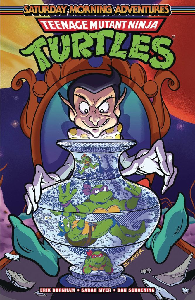 Mister Ogg is back! His last attempt to punish the Teenage Mutant Ninja Turtles' wisecracking ways and meta mannerisms failed, but Mister Ogg has still got a few surprises up his sleeve. He's devised a set of challenges, and if the Turtles win, he'll never bring up their fourth-wall-breaking again. If they lose, though, the consequences will be dire: They'll be wiped from existence! Let the Ogglympics begin! Then, with all the space-time troubles the Turtles have been involved in recently, the brothers have attracted a lot of attention. An alliance of powerful individuals is looking to recruit experienced and capable members into their number. Making their Saturday Morning Adventures debut, please welcome… the Pantheon! Collects issues #12-16.
