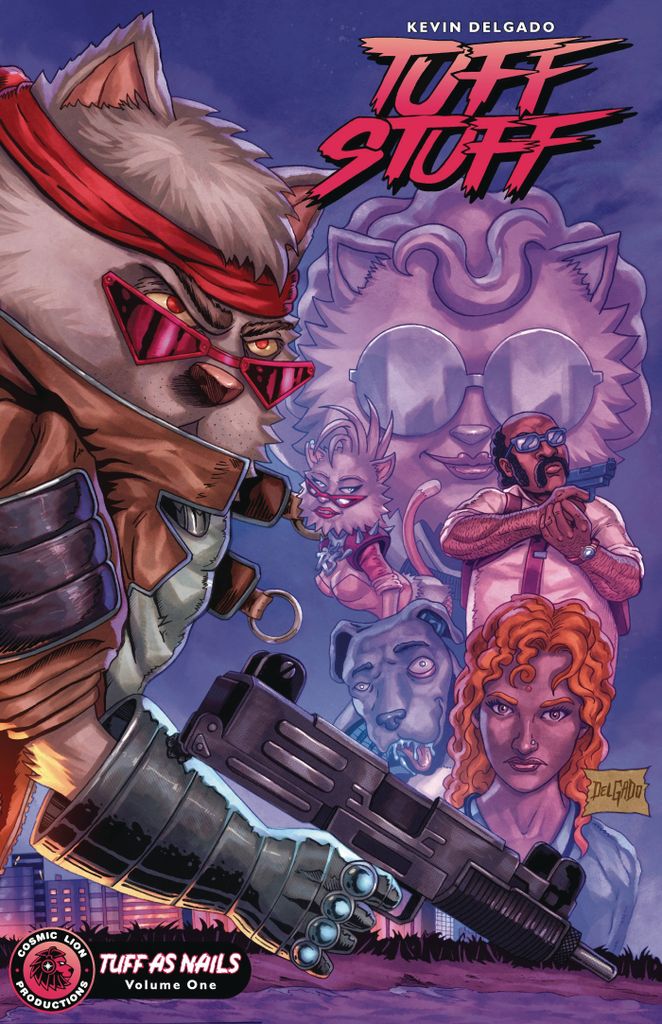 From rising artist Kevin Delgado (TMNT) comes collected version of his hit Indie series Tuff Stuff. A self indulgent cat who fights mobsters, cartels, and tech giants. An action packed comedic romp with schlock overtones and tons of Cat-itude!