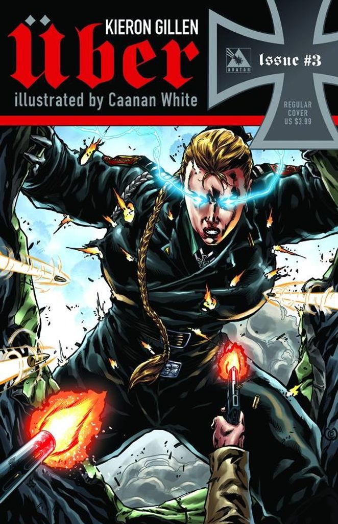 KIERON GILLEN's Uber is winning legions of fans with its unique mix of reality based events and staggeringly brutal superhuman violence. The race is on for the allies to obtain their own super powered soldiers. But the insanity brewing under Hitler's leadership has the Third Reich striking back, determined that if they can't win the war, they can at least bring everyone down with them. And his first Uber led strike will lay Paris to waste. Available with Regular or Wraparound cover by Caanan White, Propaganda Poster cover by Michael Dipascale, and a special Blitzkrieg Incentive cover by Caanan White