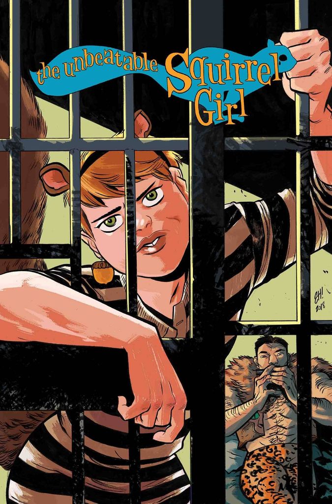 • Squirrel Girl and Kraven have had a nice day out as civilians, instead of their usual costumed identities! It was really straightforward and uneventful... • ...is what we'd be saying if this was a way more boring comic, WHICH IT ISN'T! Instead we can say that Squirrel Girl and Kraven battled Mojo's evil clone and saved the city from his deadly machinations. Then they all got arrested! • When Doreen Green and Sergei Kravenoff end up BEHIND BARS, can they be saved? Will they even make it to trial? And who will be their lawyer? • We can answer that last one: It's obviously going to be none other than JENNIFER WALTERS, the incredible SHE-HULK! • Doreen behind bars! Kraven on the stand! And a conclusion to the trial that nobody will see coming! It's all this and more in this particular Marvel comic! Rated T
