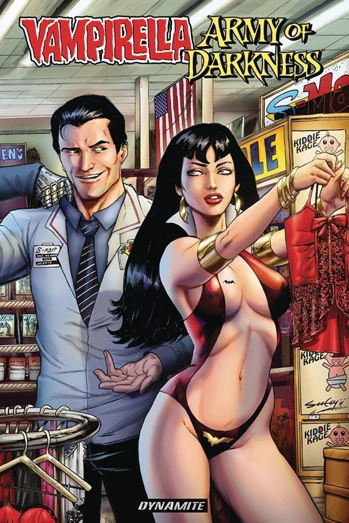 Horror icons from two universes collide as Ash Williams, the chainsaw-armed Chosen One of the small and big screen, crosses paths with the supernatural superheroine Vampirella in a story set during the events of the cult classic film, Army of Darkness! When Ash misspoke the incantation to acquire the Necronomicon, an unholy book written in blood, the spell ripped Vampirella - a force for good, despite her blood-hungry fangs - from her own time and back to 1300 AD. Infected by Deadite magic, she stalks the halls of Lord Arthur's castle, unable to control her thirst. Even if that time-lost chucklehead Ash can free her of the demonic mutation, can he convince his allies - primitive screwheads that they are - that she shouldn't be burned at the stake?