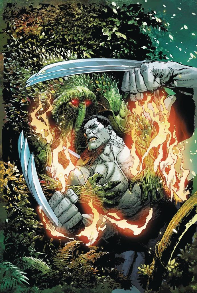 MAN-THING VERSUS HULKVERINE! • Whoever knows fear burns at the touch of Man-Thing. And Clay - A.K.A. Weapon H - has a lot to be afraid of. • He'll do anything to keep his family safe from the monster he's become. But Roxxon Corporation has other plans - and they're inches from capturing a vital part of Clay's past. Rated T+