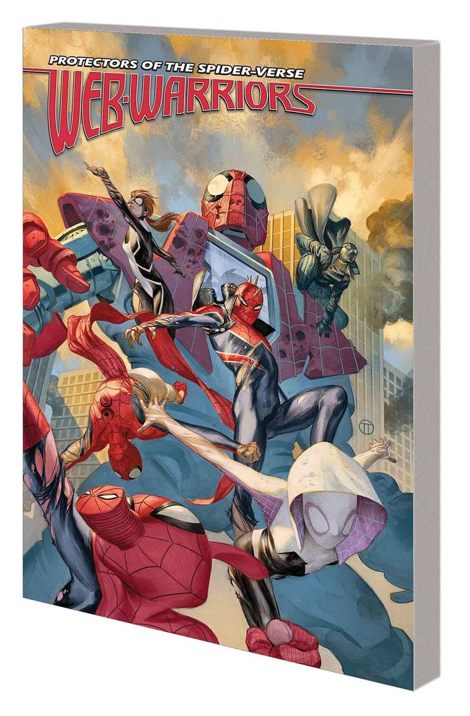 Still reeling from their fight against an army of Electros, the Web Warriors struggle to keep their team from falling apart! Also just barely holding it together is the entire Web of Life and Destiny! Even worse, its many threads are getting tangled. How are the Web Warriors supposed to repair reality itself? Maybe with the aid of the sensational Spider-Punk - after all, he carries safety pins! Or perhaps a giant Spider-Man robot from the farthest corner of the Multiverse could lend a big hand! When the team gets stuck on Earth-001, they'll take any help they can get. But with chaos spreading throughout the Spider-Verse, they'll need one heck of a recruiting drive. To stand any chance of survival, the Warriors must assemble an astounding array of amazing arachnids! But will any of them survive what's coming? Collecting WEB WARRIORS #6-11. Rated T+