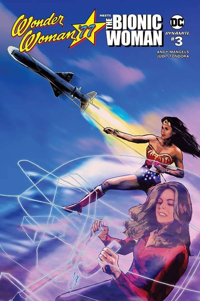 The Original Girl Power! Catching a missile after its launch is the least of the trials facing Diana Prince (aka Wonder Woman) and Jaime Sommers (The Bionic Woman)! Now, their greatest television enemies have joined forces, and they're building an army for their master plan! Wonder Woman and the Bionic Woman prepare for a trip to South America - passing through the Bermuda Triangle as they go - but the villains have other schemes. All this, plus the return of Max, the Bionic Dog! Written by best-selling author ANDY MANGELS (Star Trek & Star Wars) and illustrated by JUDIT TONDORA (Grimm Fairy Tales), WONDER WOMAN '77 MEETS THE BIONIC WOMAN has set the mainstream and internet media on fire… and the publicity keeps running!