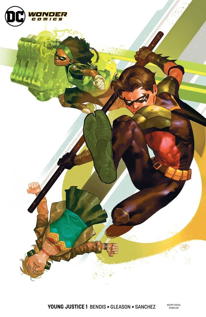 Superboy! Wonder Girl! Robin! Impulse! Amethyst! They're all united in YOUNG JUSTICE #1, the debut issue of a brand-new series that also introduces new heroes Teen Lantern and Jinny Hex! When the nightmare dimension known as Gemworld invades Metropolis, these teen heroes reunite to deal with the situation-but they're shocked to discover the battle may be the key to the return of Conner Kent, a.k.a. Superboy! This mix of fan favorites and new legacy heroes will be the center point for some of the biggest goings-on at DC! As if that weren't enough, Bendis reunites with all-star artist Patrick Gleason (SUPERMAN, ACTION COMICS, GREEN LANTERN CORPS) to bring the new heroes of DC's Wonder Comics to life!